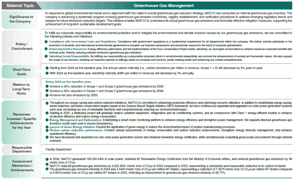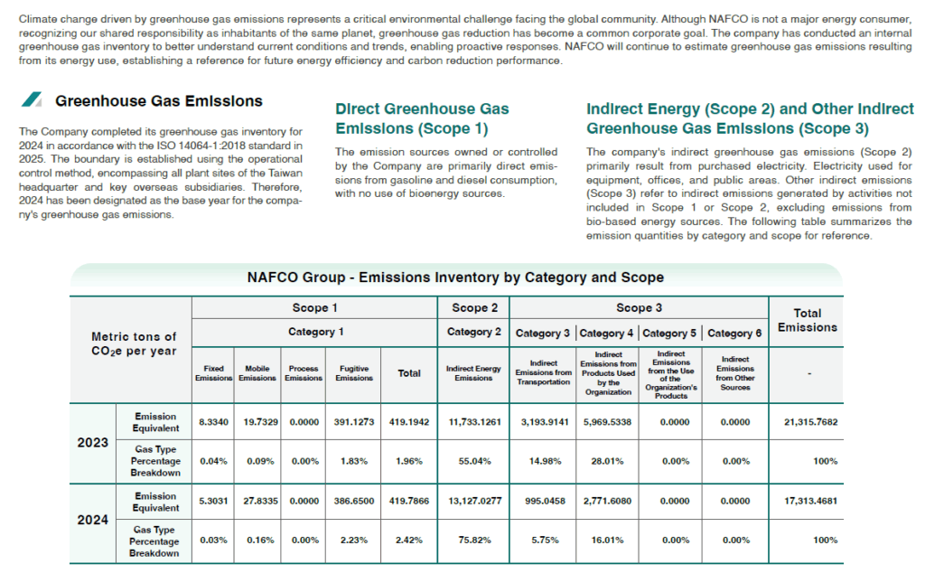 - Greenhouse Gas Management — NAFCO Achieves ISO 14064-1 Greenhouse Gas Inventory Certification, Fulfilling Its ESG Commitment to Sustainable Carbon Reduction