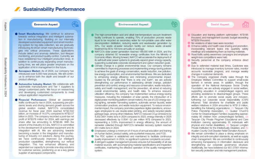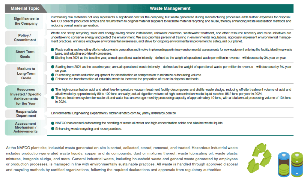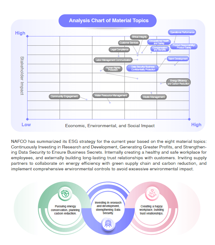 In response to the comprehensive aspects of sustainability development, encompassing environment, society, and corporate governance, specialized subcommittees are established under the ESG Committee. These subcommittees gather stakeholders’ input on issues related to environmental protection, occupational safety, supply chain management, labor rights, operational performance, and corporate governance. In accordance with respect for stakeholder interests, NAFCO also maintains a stakeholder section on its website to appropriately address sustainable topics.