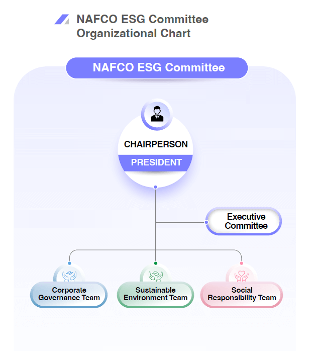 In 2023, in order to promote sustainability initiatives, NAFCO authorized the establishment of the ESG Sustainable Development Committee (referred to as the ESG Committee). The President serves as the Chairperson of the ESG Committee, and various functional teams are formed under the committee. The ESG Committee formulates corporate sustainability development policies, oversees their implementation within the company, and gradually integrates the principles of sustainable operation into NAFCO’s corporate culture.